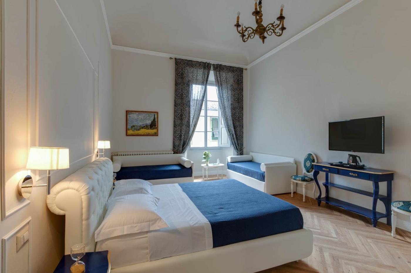 Camera Tripla Classic - San Frediano. Camera tripla dotata di bagno privato con doccia, bidet, asciugacapelli edi cortesia. Questa sistemazione matrimoniale dispone anche di aria condizionata, di TV a schermo piatto, ingresso indipendente, pareti insonorizzate, armadio e vista sulla città . L’alloggio dispone di 2 letti. ;