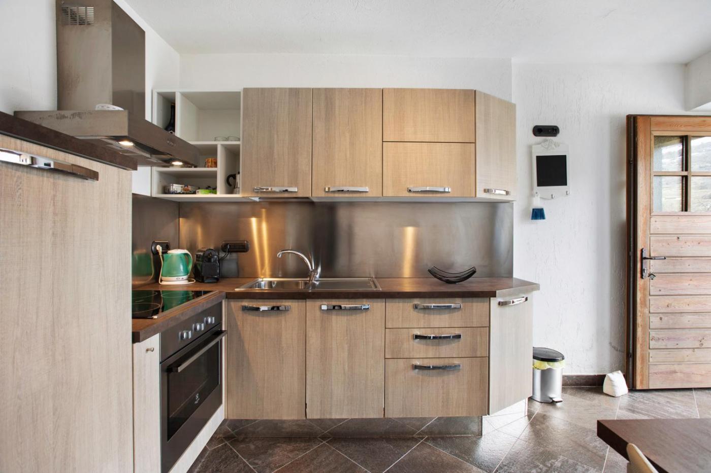 Questo appartamento comprende 1 camera da letto, 1 bagno, lenzuola, asciugamani, una TV con canali via cavo, una cucina con utensili e una terrazza con la vista sulla montagna.