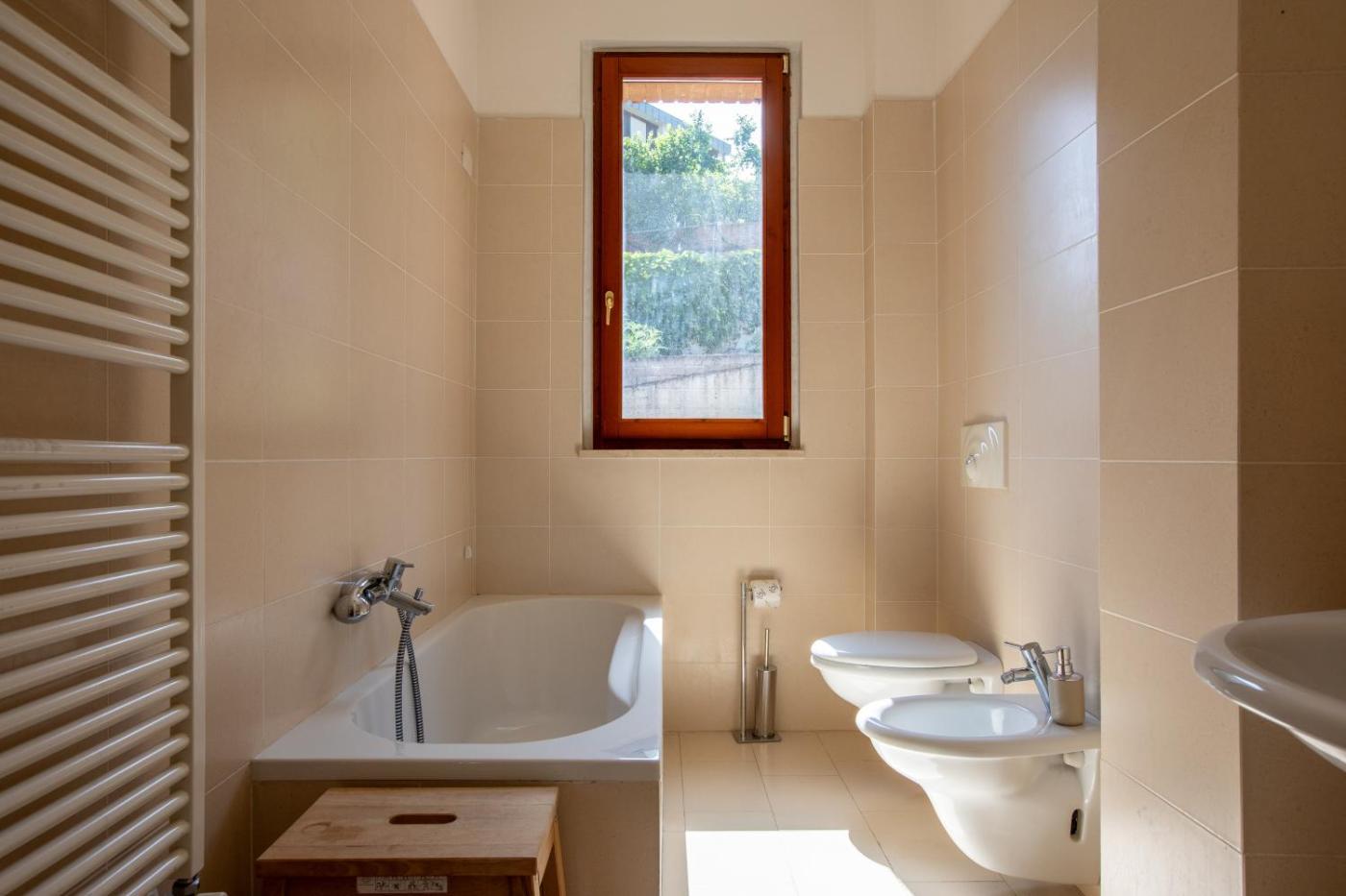 Appartamento con 2 Camere da Letto. This spacious apartment comes with 1 living room, 2 separate bedrooms and 2 bathrooms with a bath and a shower. Guests can make meals in the kitchen that features a stovetop, a refrigerator, a dishwasher and kitchenware. The apartment has parquet floors, a seating area with a flat-screen TV with satellite channels, a private entrance, a tea and coffee maker, as well as a dining area. The unit has 3 beds.